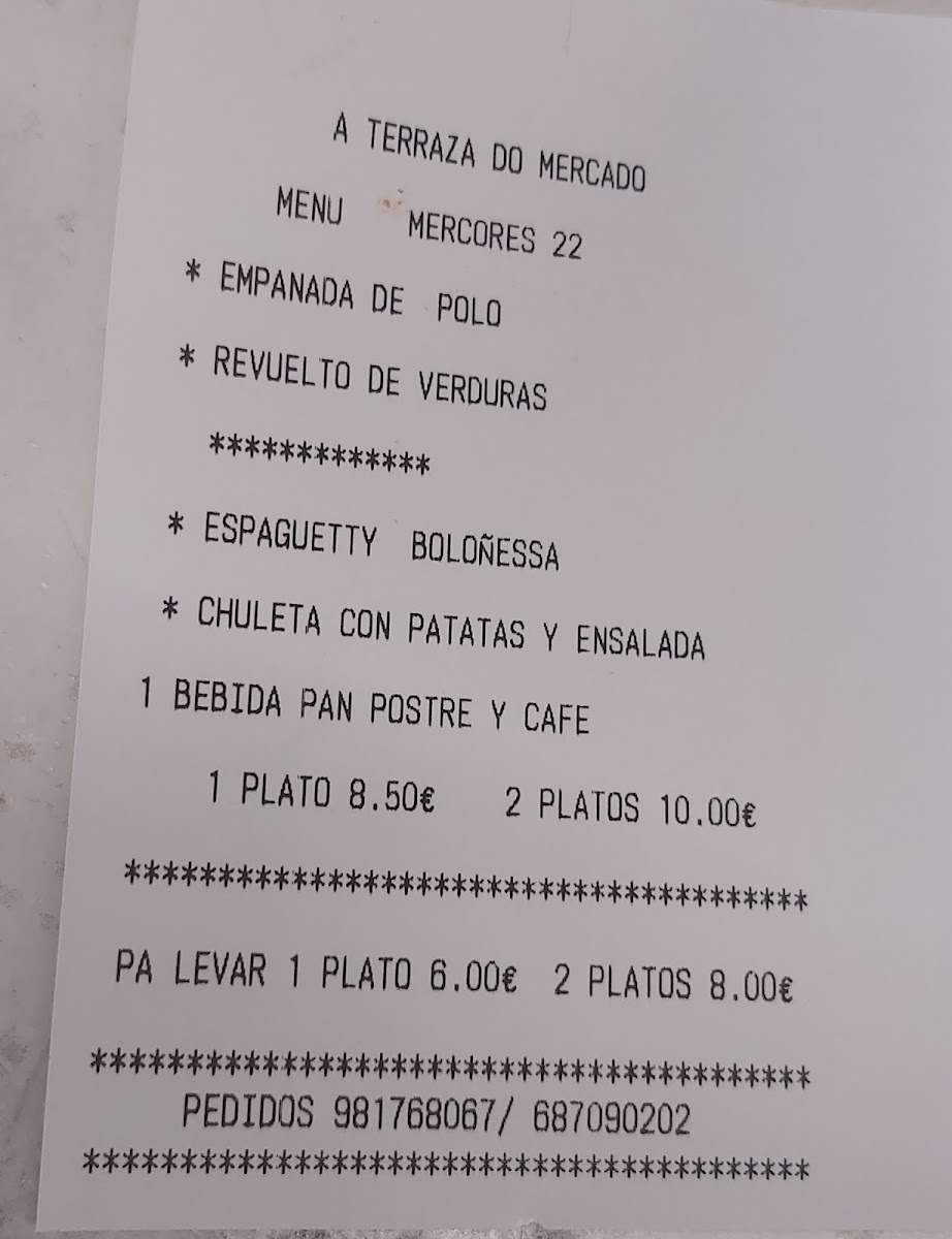 Introducing the Menu: A Terraza do mercado Ribeira is a delightful dining escape nestled on the third floor of Rua Galicia in Ribeira, A Coruña. This restaurant marries stunning port views with a menu that boasts freshness and flavor. Diners rave about their specialty dishes, particularly the irresistible "calamares" and an array of homemade desserts that are simply divine. Guests can indulge in a range of beverages while savoring their meals in a vibrant atmosphere enriched by soothing music and the pleasant maritime breeze. The attentive staff ensures excellent service, even during bustling periods, making it a perfect spot to unwind after a day of exploration. With affordable pricing and accessibility for everyone, A Terraza do mercado Ribeira is a treasured gem where delicious culinary artistry meets a warm and inviting ambiance. Make sure to visit this culinary haven for unforgettable flavors and breathtaking views that will have you returning time and again.